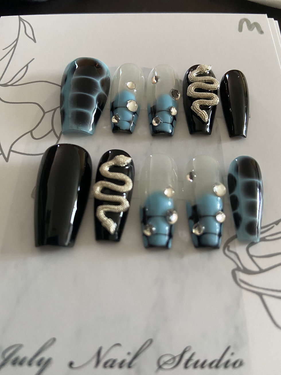 Blue & Black Snake Nails